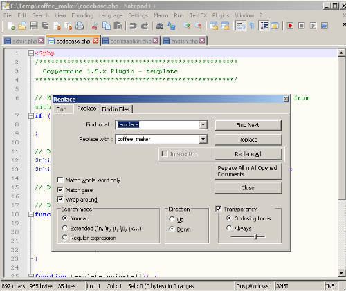 Please note that the above screenshots have been added as examples. Coppermine is not afiliated with Notepad++, nor do we support that particular application. However, we recommend it!